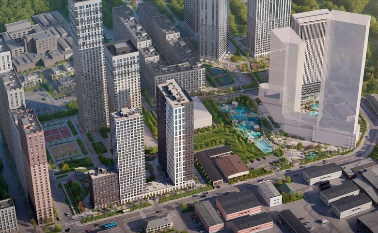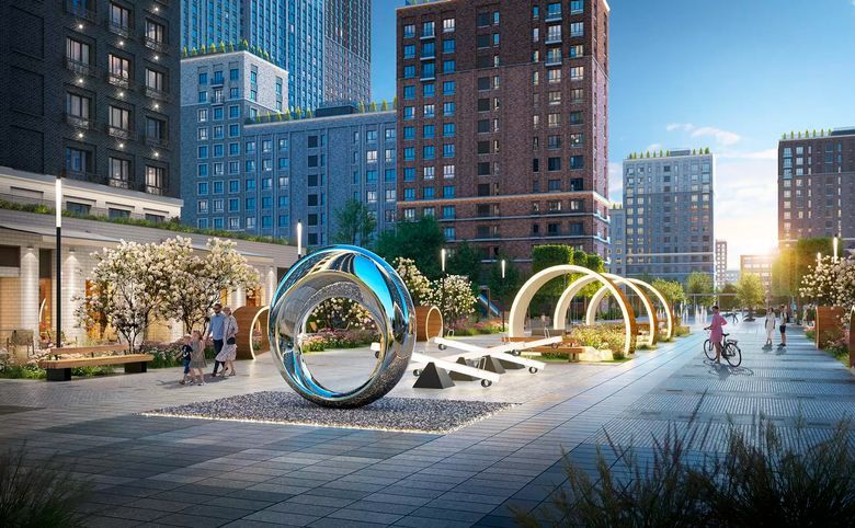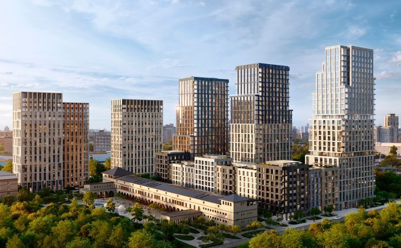 Проект представляет собой квартальную застройку в стиле Нью-Йорка. Дворы закрыты от